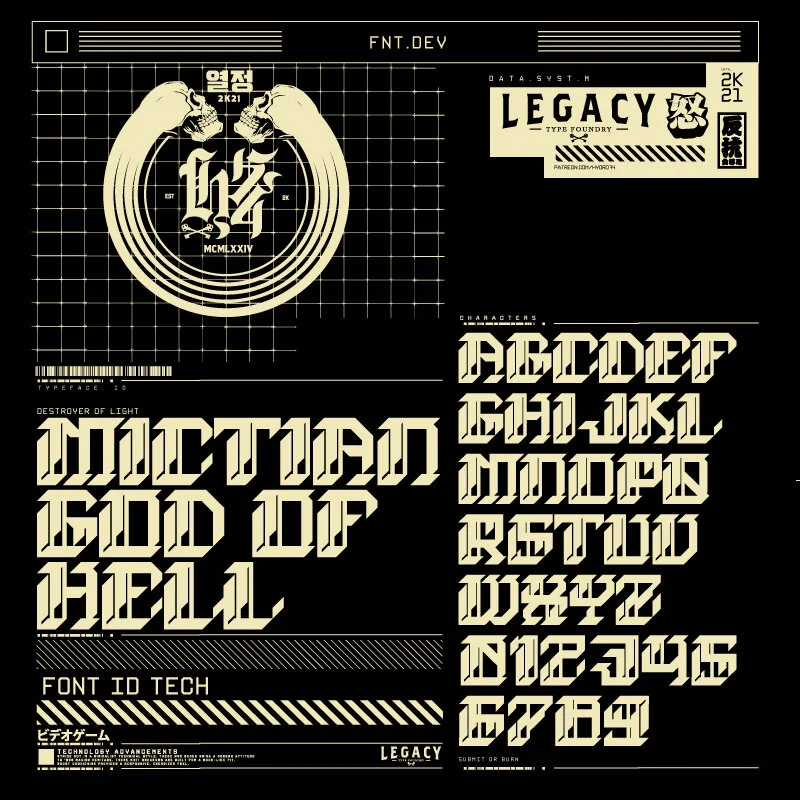 Recently started a Patreon where in support of my work, you get access to new fonts that are exclusive to members as well as access to ALL OF Legacy of Defeats fonts & Vector files.